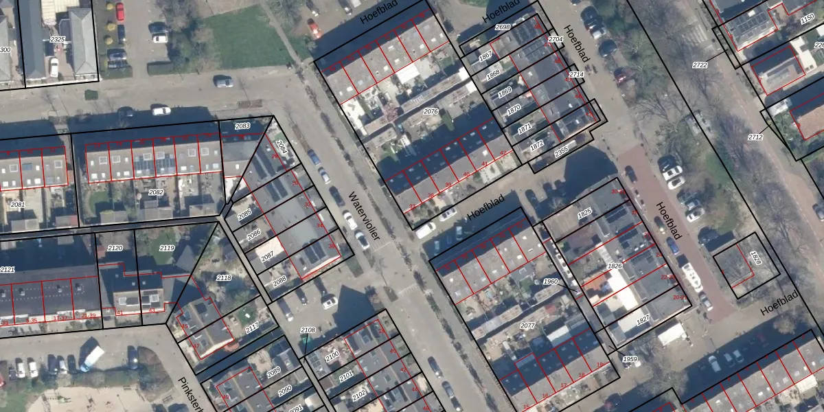 Het perceel waarop Hoefblad 37 staat heeft een oppervlakte van 1465 m². Dit is een zeer groot perceel. De perceeloppervlakte wordt geregistreerd door het Kadaster. Gedetailleerde informatie over de maten van dit perceel kunt u vinden in het rapport Kadastrale kaart met maatvoering van Hoefblad 37.