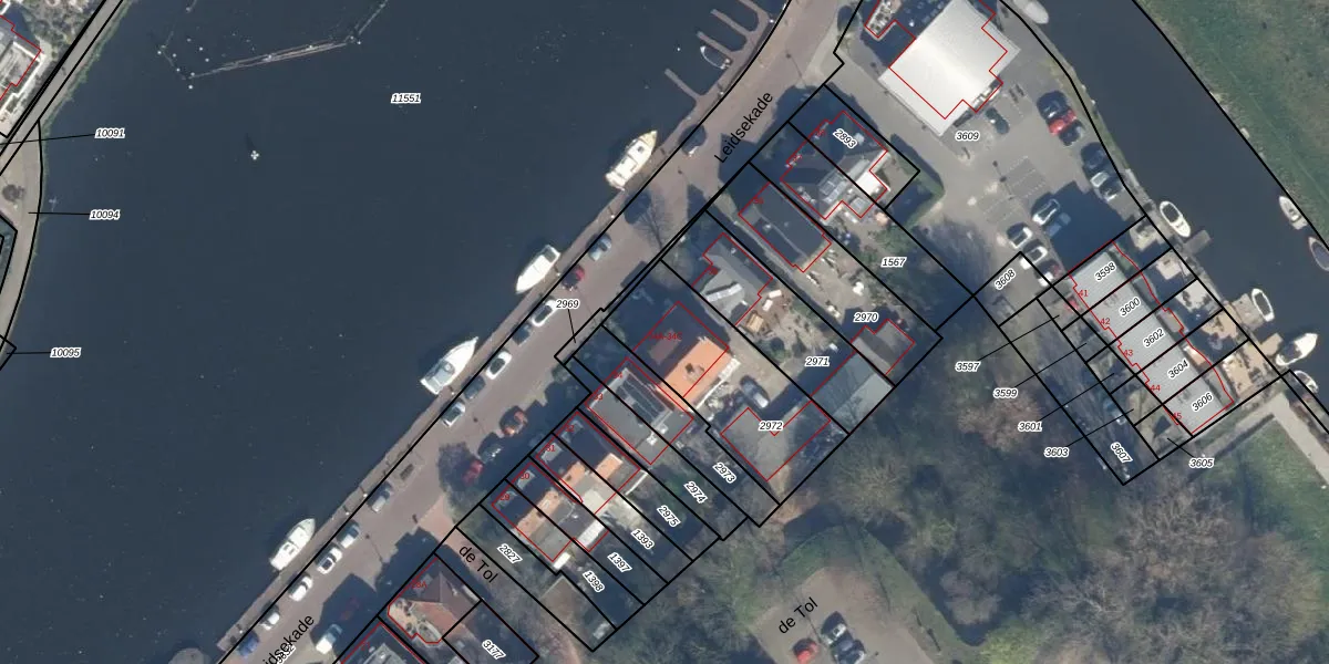 Leidsekade 34-B is gelegen op kadastraal perceel SWK03F2972. Deze kadastrale aanduiding is uniek en wordt gebruikt door het Kadaster om eigendomsrechten en andere zakelijke rechten vast te leggen. Het perceel maakt onderdeel uit van de kadastrale gemeente Stompwijk.