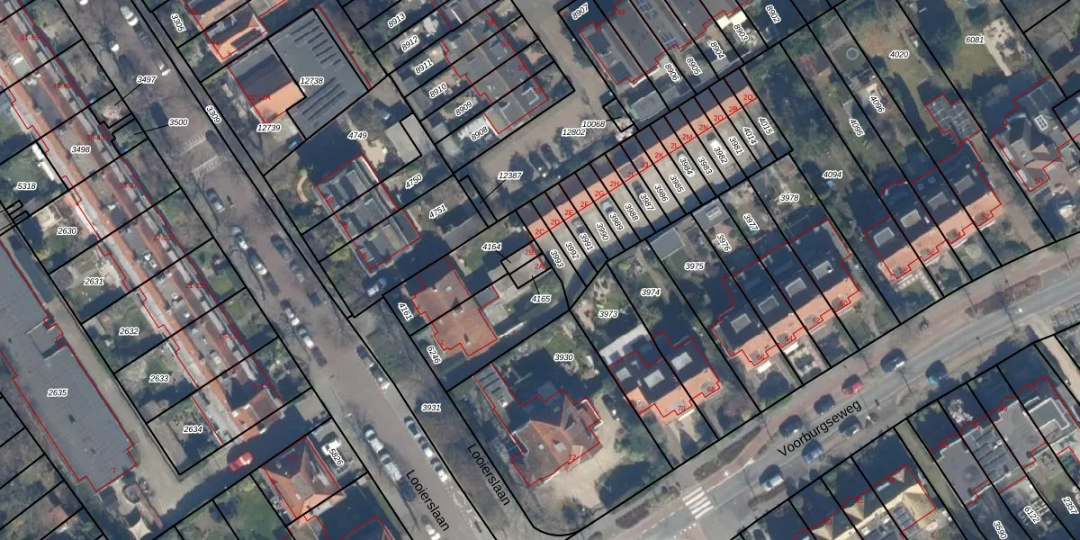 Looierslaan 2-A is gelegen op kadastraal perceel VEU00B4165. Deze kadastrale aanduiding is uniek en wordt gebruikt door het Kadaster om eigendomsrechten en andere zakelijke rechten vast te leggen. Het perceel maakt onderdeel uit van de kadastrale gemeente Veur.