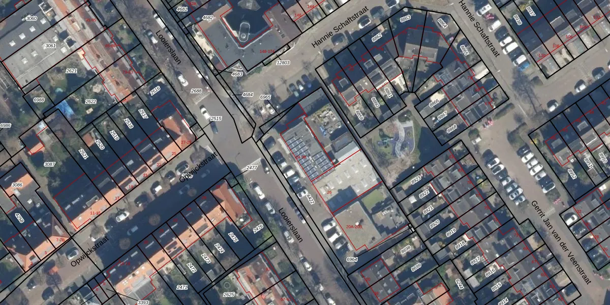 Looierslaan 24 is gelegen op kadastraal perceel VEU00B6422. Deze kadastrale aanduiding is uniek en wordt gebruikt door het Kadaster om eigendomsrechten en andere zakelijke rechten vast te leggen. Het perceel maakt onderdeel uit van de kadastrale gemeente Veur.