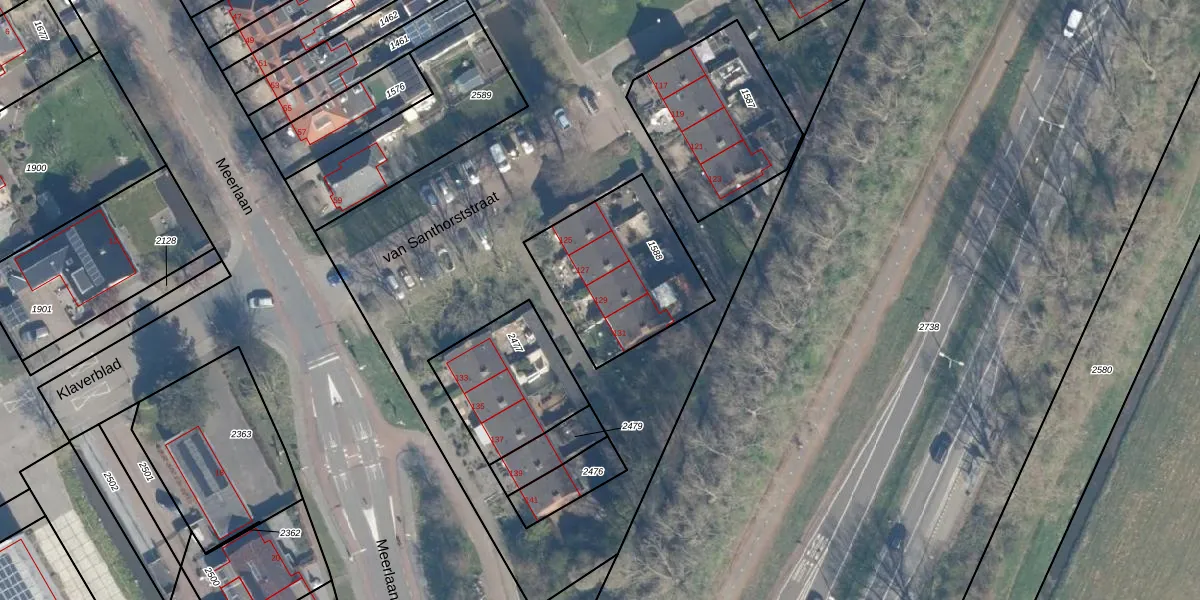 van Santhorststraat 129 is gelegen op kadastraal perceel SWK03C1588. Deze kadastrale aanduiding is uniek en wordt gebruikt door het Kadaster om eigendomsrechten en andere zakelijke rechten vast te leggen. Het perceel maakt onderdeel uit van de kadastrale gemeente Stompwijk.