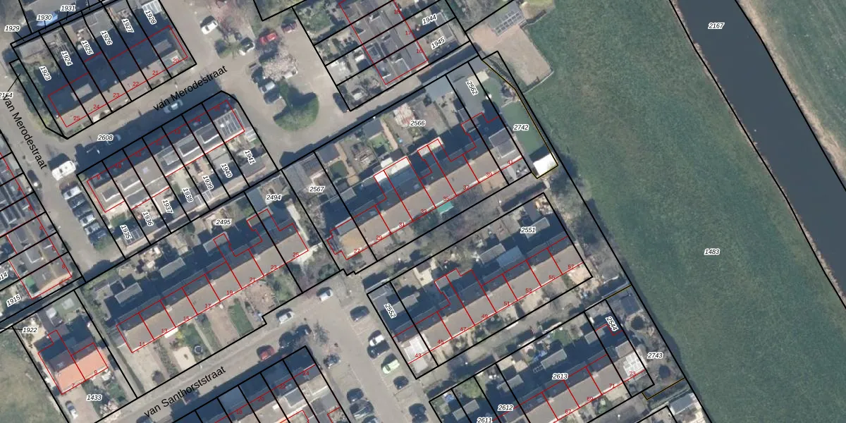 van Santhorststraat 33 is gelegen op kadastraal perceel SWK03C2566. Deze kadastrale aanduiding is uniek en wordt gebruikt door het Kadaster om eigendomsrechten en andere zakelijke rechten vast te leggen. Het perceel maakt onderdeel uit van de kadastrale gemeente Stompwijk.