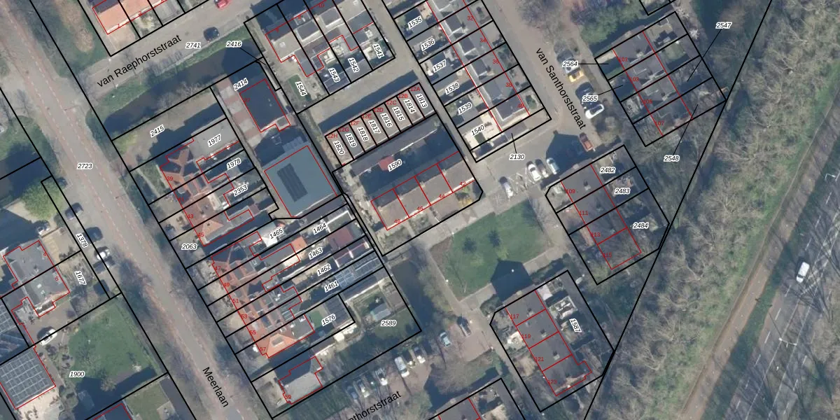 Het perceel waarop van Santhorststraat 46 staat heeft een oppervlakte van 666 m². Dit is een groot perceel. De perceeloppervlakte wordt geregistreerd door het Kadaster. Gedetailleerde informatie over de maten van dit perceel kunt u vinden in het rapport Kadastrale kaart met maatvoering van van Santhorststraat 46.