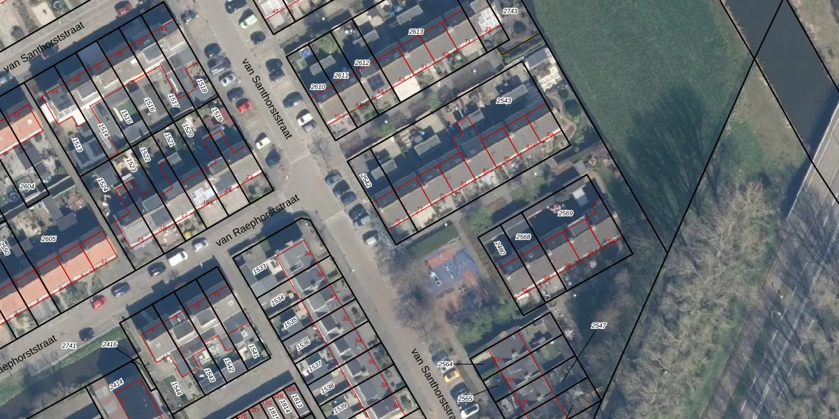 Het perceel waarop van Santhorststraat 77 staat heeft een oppervlakte van 970 m². Dit is een groot perceel. De perceeloppervlakte wordt geregistreerd door het Kadaster. Gedetailleerde informatie over de maten van dit perceel kunt u vinden in het rapport Kadastrale kaart met maatvoering van van Santhorststraat 77.