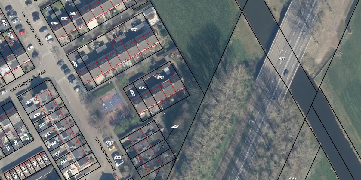 van Santhorststraat 99 is gelegen op kadastraal perceel SWK03C2569. Deze kadastrale aanduiding is uniek en wordt gebruikt door het Kadaster om eigendomsrechten en andere zakelijke rechten vast te leggen. Het perceel maakt onderdeel uit van de kadastrale gemeente Stompwijk.