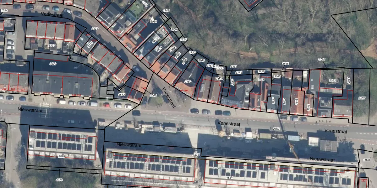 Het perceel waarop Venestraat 99 staat heeft een oppervlakte van 176 m². Dit is een middelgroot perceel. De perceeloppervlakte wordt geregistreerd door het Kadaster. Gedetailleerde informatie over de maten van dit perceel kunt u vinden in het rapport Kadastrale kaart met maatvoering van Venestraat 99.