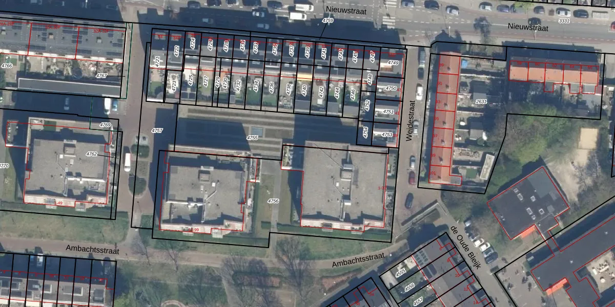Het perceel waarop Weidestraat 13 staat heeft een oppervlakte van 2224 m². Dit is een zeer groot perceel. De perceeloppervlakte wordt geregistreerd door het Kadaster. Gedetailleerde informatie over de maten van dit perceel kunt u vinden in het rapport Kadastrale kaart met maatvoering van Weidestraat 13.