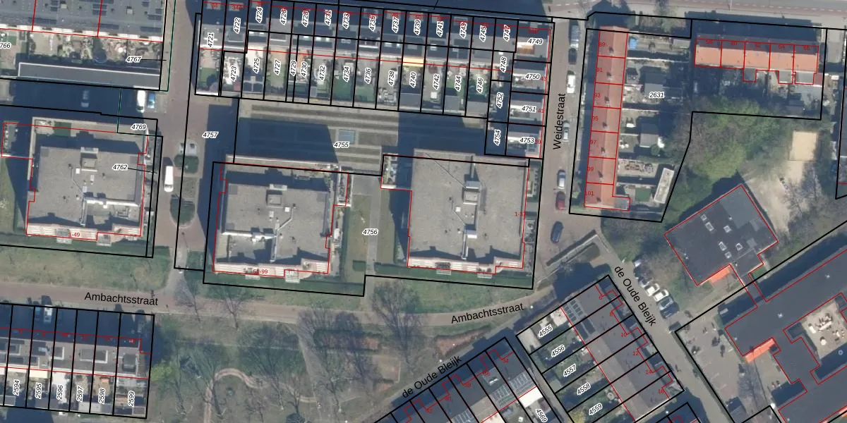 Het perceel waarop Weidestraat 15 staat heeft een oppervlakte van 2224 m². Dit is een zeer groot perceel. De perceeloppervlakte wordt geregistreerd door het Kadaster. Gedetailleerde informatie over de maten van dit perceel kunt u vinden in het rapport Kadastrale kaart met maatvoering van Weidestraat 15.