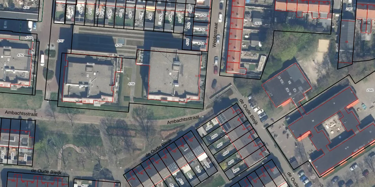 Het perceel waarop Weidestraat 19 staat heeft een oppervlakte van 2224 m². Dit is een zeer groot perceel. De perceeloppervlakte wordt geregistreerd door het Kadaster. Gedetailleerde informatie over de maten van dit perceel kunt u vinden in het rapport Kadastrale kaart met maatvoering van Weidestraat 19.