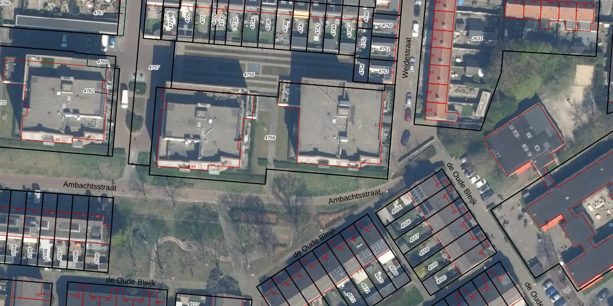 Het perceel waarop Weidestraat 27 staat heeft een oppervlakte van 2224 m². Dit is een zeer groot perceel. De perceeloppervlakte wordt geregistreerd door het Kadaster. Gedetailleerde informatie over de maten van dit perceel kunt u vinden in het rapport Kadastrale kaart met maatvoering van Weidestraat 27.