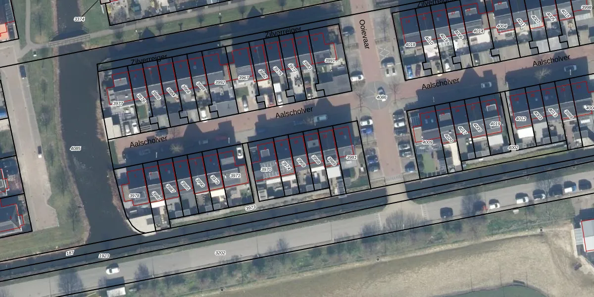 Gebruik de zoekbalk of klik op een perceel voor informatie over de adressen binnen dit perceel.