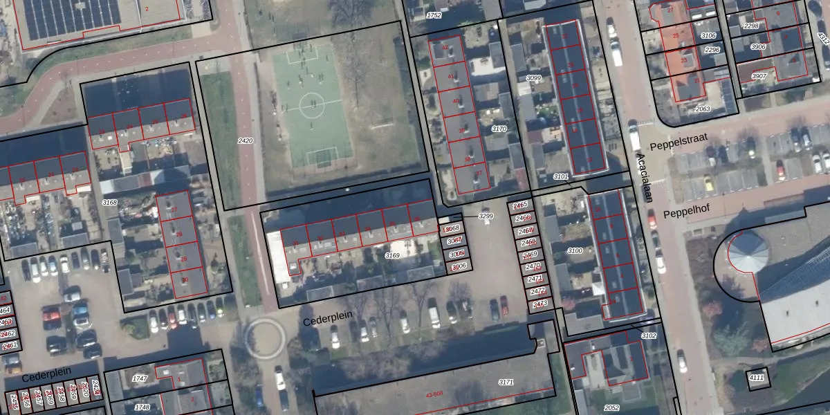 Het perceel waarop Cederplein 36 staat heeft een oppervlakte van 980 m². Dit is een groot perceel. De perceeloppervlakte wordt geregistreerd door het Kadaster. Gedetailleerde informatie over de maten van dit perceel kunt u vinden in het rapport Kadastrale kaart met maatvoering van Cederplein 36.