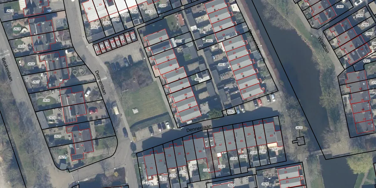 Het perceel waarop Dennenlaan 59 staat heeft een oppervlakte van 2763 m². Dit is een zeer groot perceel. De perceeloppervlakte wordt geregistreerd door het Kadaster. Gedetailleerde informatie over de maten van dit perceel kunt u vinden in het rapport Kadastrale kaart met maatvoering van Dennenlaan 59.