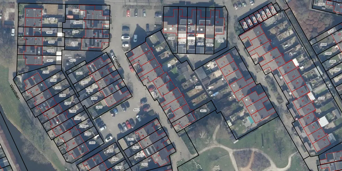 Het perceel waarop Griede 12 staat heeft een oppervlakte van 2640 m². Dit is een zeer groot perceel. De perceeloppervlakte wordt geregistreerd door het Kadaster. Gedetailleerde informatie over de maten van dit perceel kunt u vinden in het rapport Kadastrale kaart met maatvoering van Griede 12.