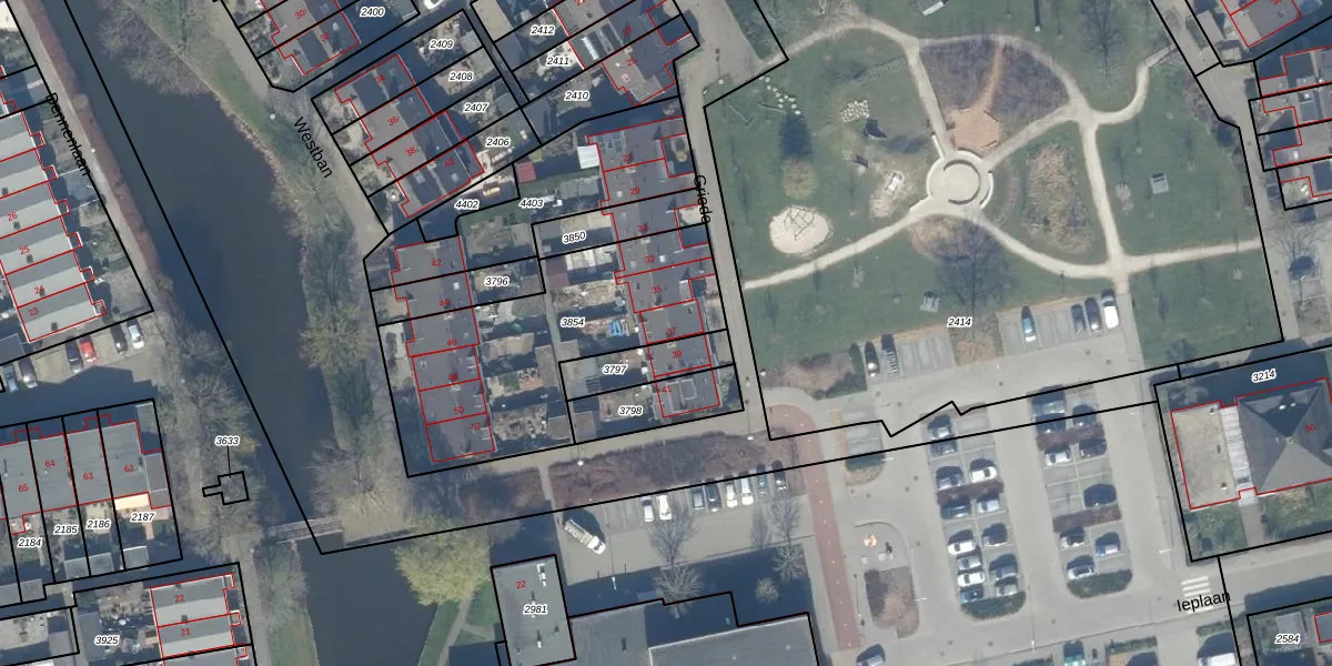 Het perceel waarop Griede 37 staat heeft een oppervlakte van 1005 m². Dit is een zeer groot perceel. De perceeloppervlakte wordt geregistreerd door het Kadaster. Gedetailleerde informatie over de maten van dit perceel kunt u vinden in het rapport Kadastrale kaart met maatvoering van Griede 37.