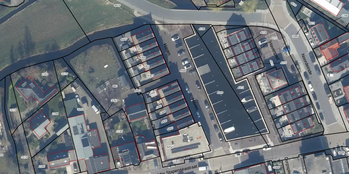 Het perceel waarop Haven 30 staat heeft een oppervlakte van 143 m². Dit is een middelgroot perceel. De perceeloppervlakte wordt geregistreerd door het Kadaster. Gedetailleerde informatie over de maten van dit perceel kunt u vinden in het rapport Kadastrale kaart met maatvoering van Haven 30.