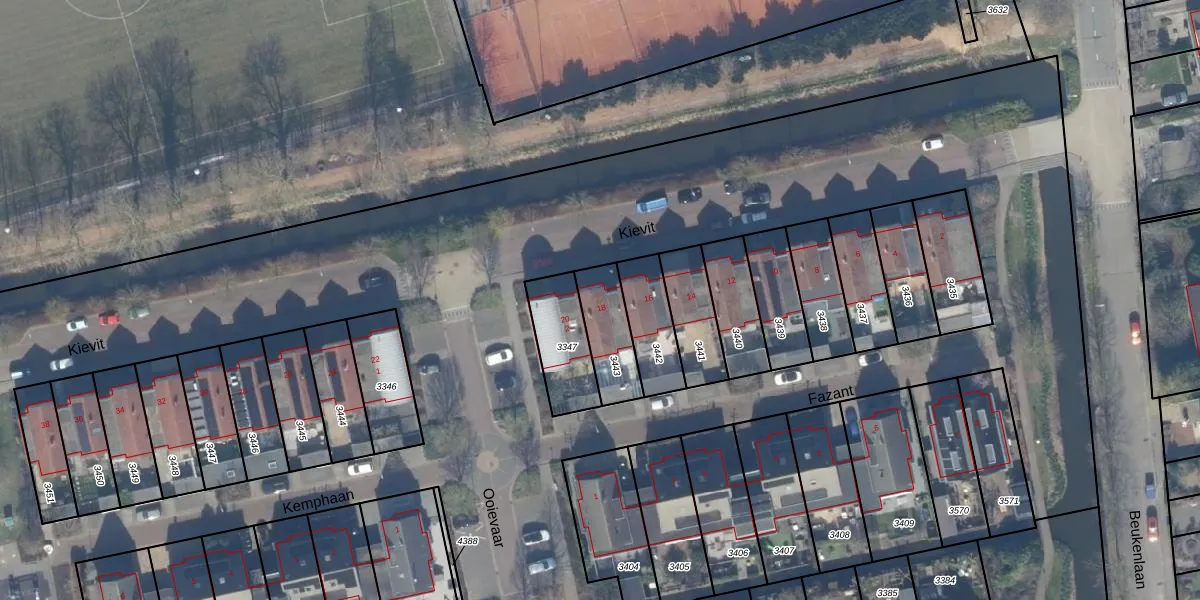 Het perceel waarop Kievit 18 staat heeft een oppervlakte van 165 m². Dit is een middelgroot perceel. De perceeloppervlakte wordt geregistreerd door het Kadaster. Gedetailleerde informatie over de maten van dit perceel kunt u vinden in het rapport Kadastrale kaart met maatvoering van Kievit 18.