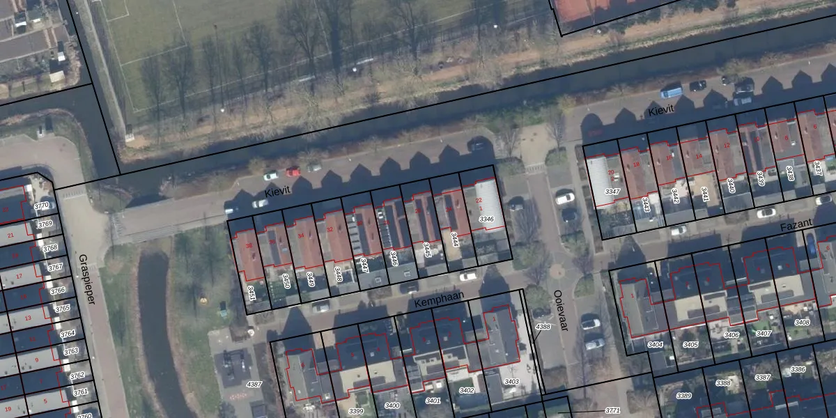 Het perceel waarop Kievit 26 staat heeft een oppervlakte van 165 m². Dit is een middelgroot perceel. De perceeloppervlakte wordt geregistreerd door het Kadaster. Gedetailleerde informatie over de maten van dit perceel kunt u vinden in het rapport Kadastrale kaart met maatvoering van Kievit 26.