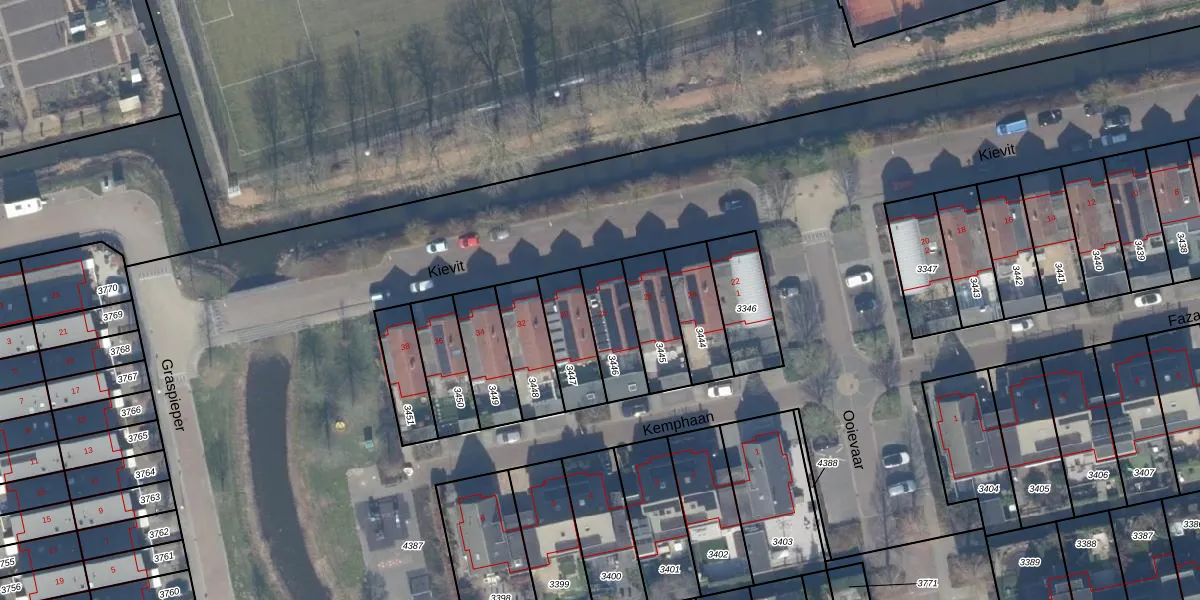 Het perceel waarop Kievit 28 staat heeft een oppervlakte van 165 m². Dit is een middelgroot perceel. De perceeloppervlakte wordt geregistreerd door het Kadaster. Gedetailleerde informatie over de maten van dit perceel kunt u vinden in het rapport Kadastrale kaart met maatvoering van Kievit 28.