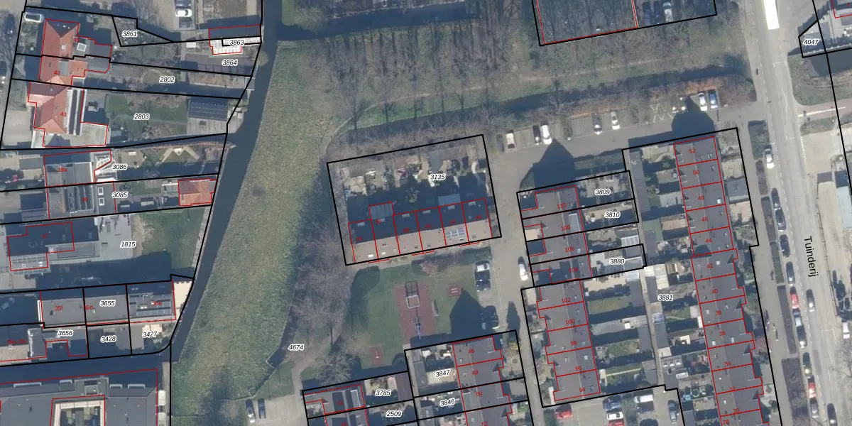 Het adres ligt op het perceel LMD02-A-3135, dat zich in de kadastrale gemeente Leimuiden bevindt. Het perceel is kleiner dan gemiddeld in Leimuiden. Het perceel is 899 m² groot, terwijl het gemiddelde ligt op 3726,5 m². De grootste perceeloppervlakte in de kadastrale gemeente is 43,8 ha. De kleinste oppervlakte bedraagt 0 m². Op het perceel liggen in totaal 6 adressen. In de Basisregistratie Kadaster (BRK) werden de grenzen van het perceel geregistreerd op 10-09-2008.
