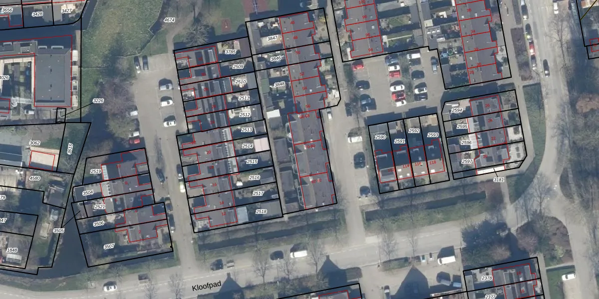Het perceel waarop Kloofpad 74 staat heeft een oppervlakte van 1040 m². Dit is een zeer groot perceel. De perceeloppervlakte wordt geregistreerd door het Kadaster. Gedetailleerde informatie over de maten van dit perceel kunt u vinden in het rapport Kadastrale kaart met maatvoering van Kloofpad 74.
