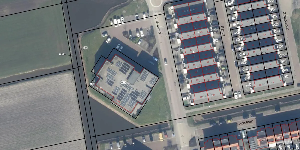 Het adres ligt op het perceel LMD02-A-3672, dat zich in de kadastrale gemeente Leimuiden bevindt. Het perceel is kleiner dan gemiddeld in Leimuiden. Het perceel is 1192 m² groot, terwijl het gemiddelde ligt op 3726,5 m². De grootste perceeloppervlakte in de kadastrale gemeente is 43,8 ha. De kleinste oppervlakte bedraagt 0 m². Er zijn 16 adressen aanwezig op het perceel. De laatste wijziging in het de Basisregistratie Kadaster (BRK) was op 13-11-2009.