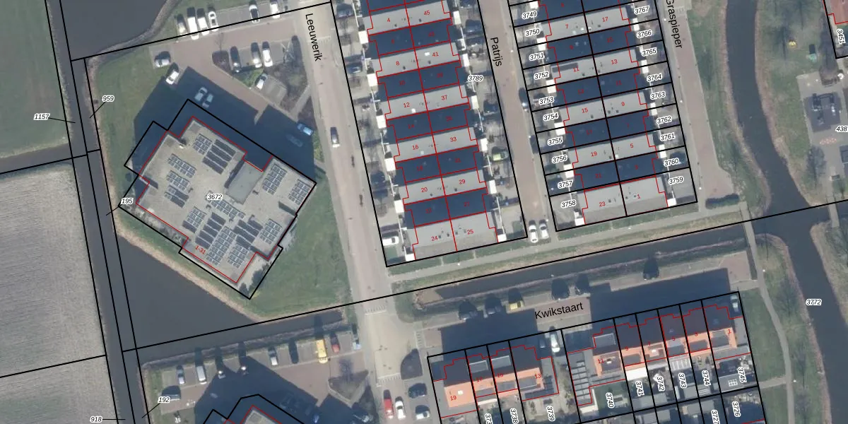 Het adres ligt op het perceel LMD02-A-3789, dat zich in de kadastrale gemeente Leimuiden bevindt. Het perceel is kleiner dan gemiddeld in Leimuiden. Het perceel is 2372 m² groot, terwijl het gemiddelde ligt op 3726,5 m². Het grootste perceel in de kadastrale gemeente is 43,8 ha. Het kleinste perceel heeft een oppervlakte van 0 m². Op het perceel liggen in totaal 24 adressen. De huidige grenzen van het perceel zijn digitaal in de Basisregistratie Kadaster (BRK) geregistreerd op 16-07-2012.