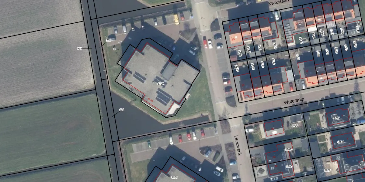 Het adres ligt op het perceel LMD02-A-3720, dat zich in de kadastrale gemeente Leimuiden bevindt. Het perceel is kleiner dan gemiddeld in Leimuiden. Het perceel is 1170 m² groot, terwijl het gemiddelde ligt op 3726,5 m². De grootste perceeloppervlakte in de kadastrale gemeente is 43,8 ha. De kleinste oppervlakte bedraagt 0 m². Op het perceel liggen in totaal 16 adressen. De huidige grenzen van het perceel zijn digitaal in de Basisregistratie Kadaster (BRK) geregistreerd op 13-12-2011.
