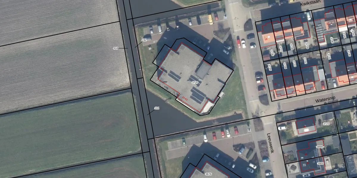 Het adres ligt op het perceel LMD02-A-3720, dat zich in de kadastrale gemeente Leimuiden bevindt. Het perceel is kleiner dan gemiddeld in Leimuiden. Het perceel is 1170 m² groot, terwijl het gemiddelde ligt op 3726,5 m². De grootste perceeloppervlakte in de kadastrale gemeente is 43,8 ha. De kleinste oppervlakte bedraagt 0 m². Op het perceel liggen in totaal 16 adressen. In de Basisregistratie Kadaster (BRK) werden de grenzen van het perceel geregistreerd op 13-12-2011.