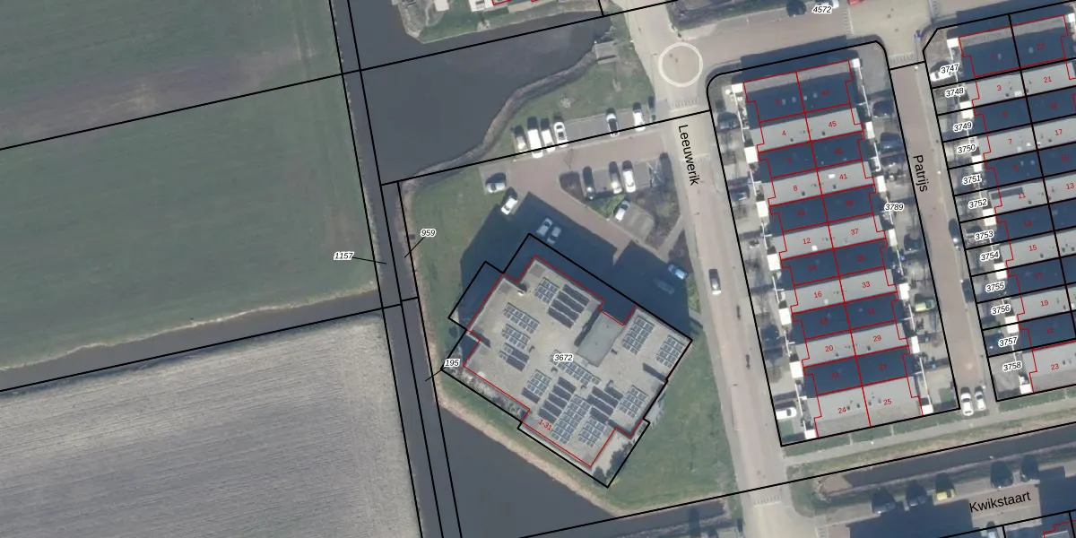 Het adres ligt op het perceel LMD02-A-3672, dat zich in de kadastrale gemeente Leimuiden bevindt. Het perceel is kleiner dan gemiddeld in Leimuiden. Het perceel is 1192 m² groot, terwijl het gemiddelde ligt op 3726,5 m². De grootste perceeloppervlakte in de kadastrale gemeente is 43,8 ha. De kleinste oppervlakte bedraagt 0 m². Op het perceel liggen in totaal 16 adressen. De huidige grenzen van het perceel zijn digitaal in de Basisregistratie Kadaster (BRK) geregistreerd op 13-11-2009.