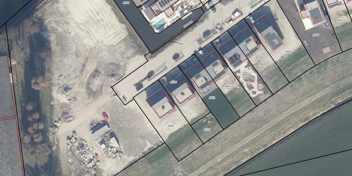 Het perceel waarop Mastweg 18 staat heeft een oppervlakte van 447 m². Dit is een groot perceel. De perceeloppervlakte wordt geregistreerd door het Kadaster. Gedetailleerde informatie over de maten van dit perceel kunt u vinden in het rapport Kadastrale kaart met maatvoering van Mastweg 18.