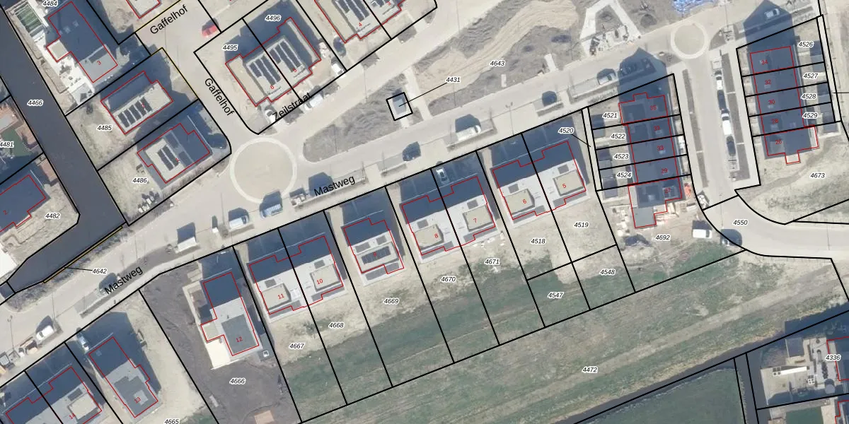 Het perceel waarop Mastweg 8 staat heeft een oppervlakte van 514 m². Dit is een groot perceel. De perceeloppervlakte wordt geregistreerd door het Kadaster. Gedetailleerde informatie over de maten van dit perceel kunt u vinden in het rapport Kadastrale kaart met maatvoering van Mastweg 8.