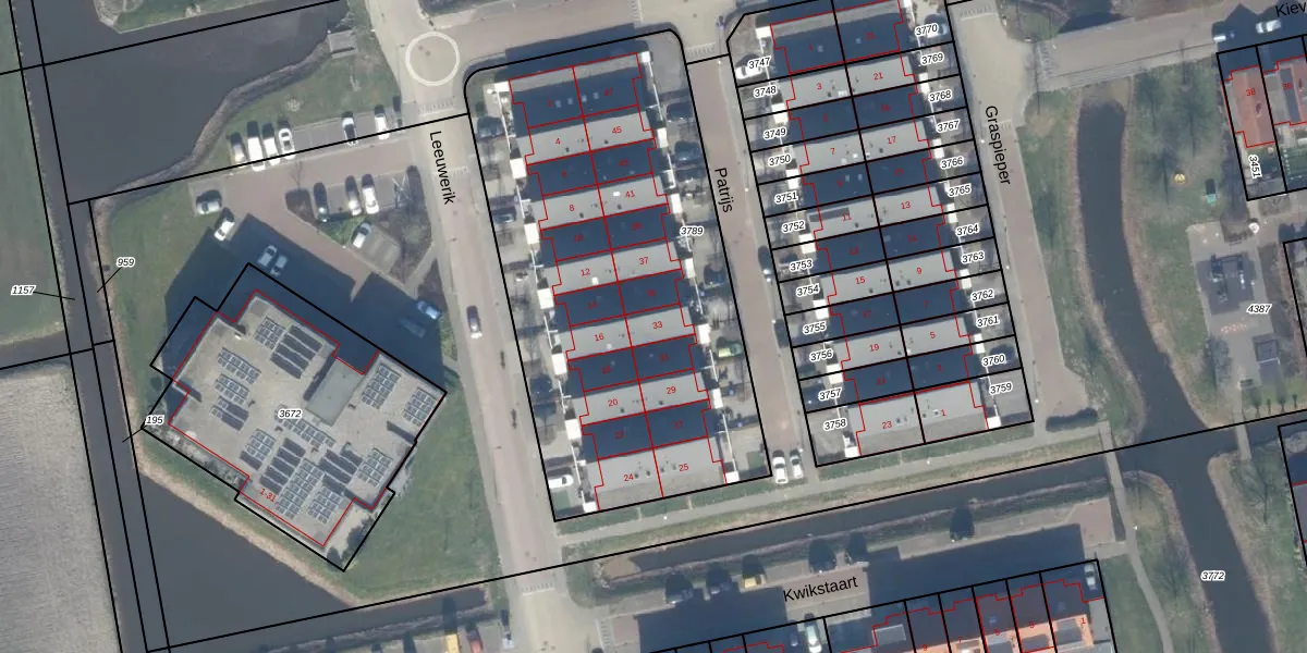 Patrijs 33 is gelegen op kadastraal perceel LMD02A3789. Deze kadastrale aanduiding is uniek en wordt gebruikt door het Kadaster om eigendomsrechten en andere zakelijke rechten vast te leggen. Het perceel maakt onderdeel uit van de kadastrale gemeente Leimuiden.