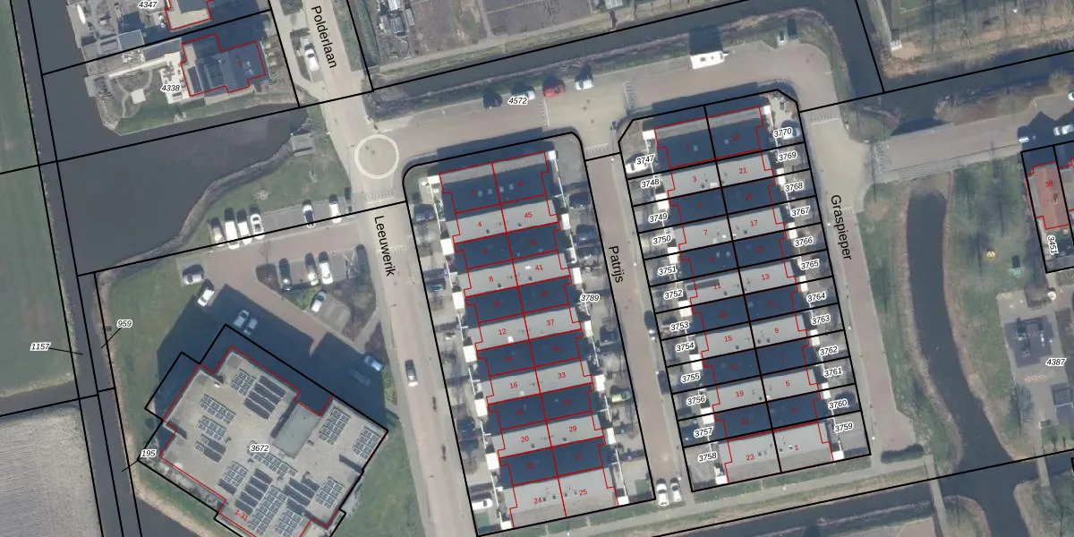 Het perceel waarop Patrijs 41 staat heeft een oppervlakte van 2372 m². Dit is een zeer groot perceel. De perceeloppervlakte wordt geregistreerd door het Kadaster. Gedetailleerde informatie over de maten van dit perceel kunt u vinden in het rapport Kadastrale kaart met maatvoering van Patrijs 41.