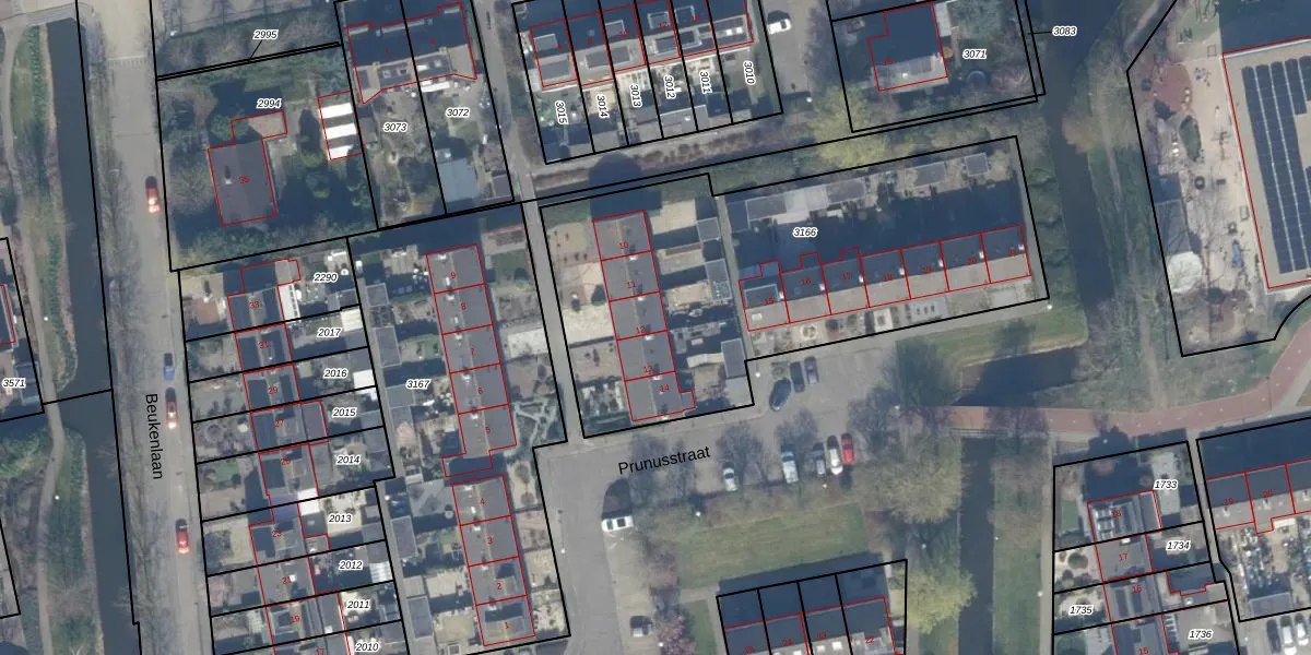 Prunusstraat 12 is gelegen op kadastraal perceel LMD02A3166. Deze kadastrale aanduiding is uniek en wordt gebruikt door het Kadaster om eigendomsrechten en andere zakelijke rechten vast te leggen. Het perceel maakt onderdeel uit van de kadastrale gemeente Leimuiden.