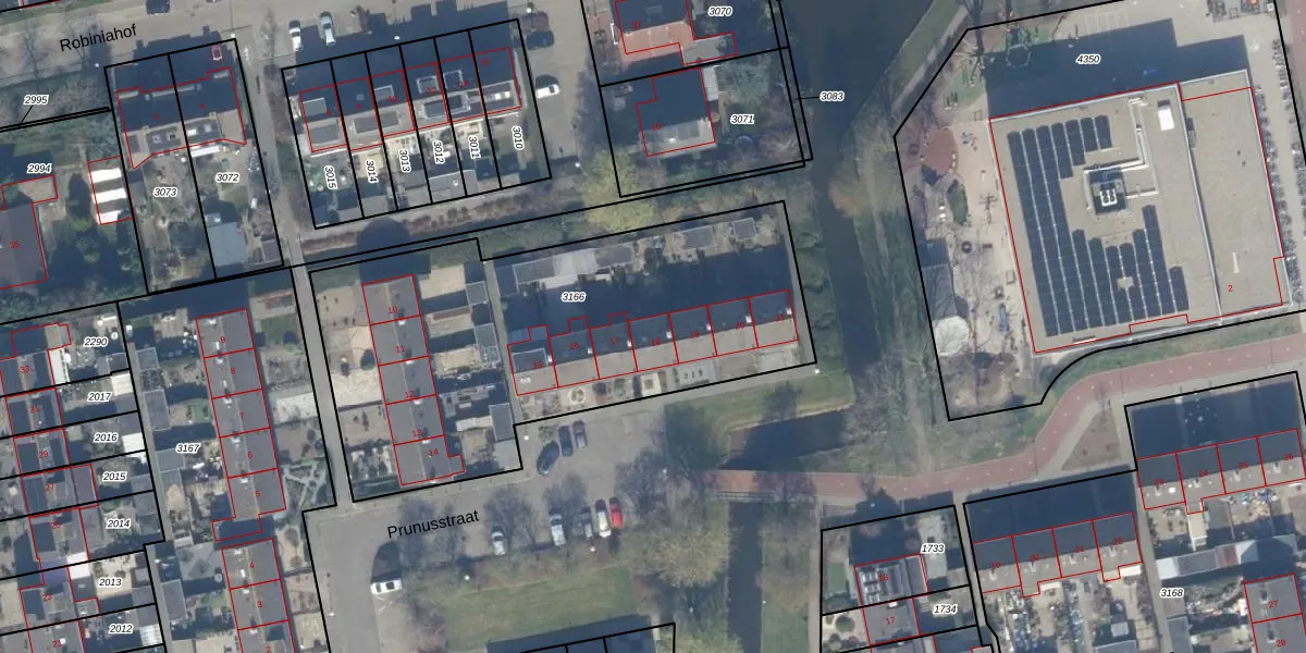 Het perceel waarop Prunusstraat 18 staat heeft een oppervlakte van 2143 m². Dit is een zeer groot perceel. De perceeloppervlakte wordt geregistreerd door het Kadaster. Gedetailleerde informatie over de maten van dit perceel kunt u vinden in het rapport Kadastrale kaart met maatvoering van Prunusstraat 18.