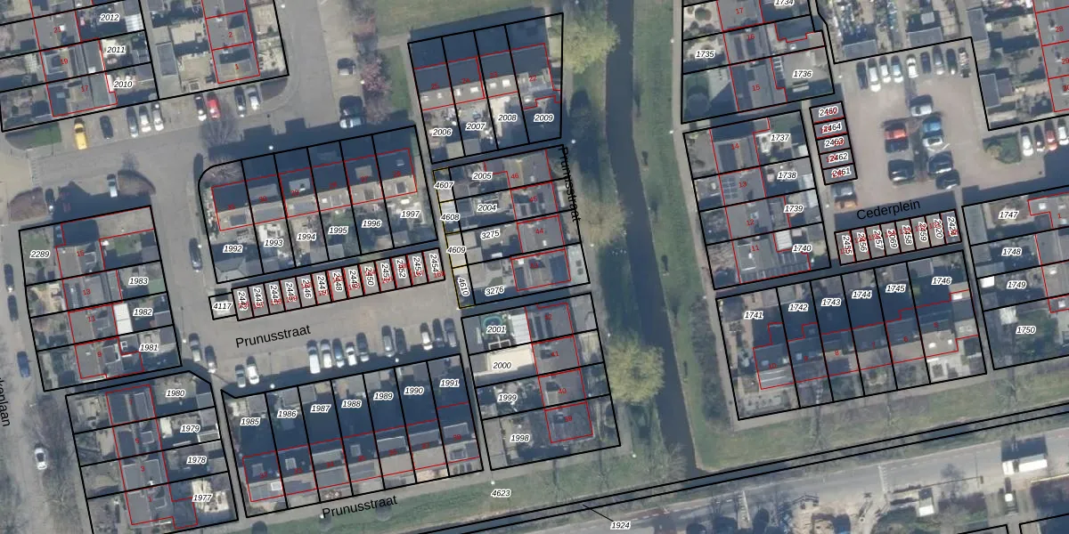 Het perceel waarop Prunusstraat 43 staat heeft een oppervlakte van 174 m². Dit is een middelgroot perceel. De perceeloppervlakte wordt geregistreerd door het Kadaster. Gedetailleerde informatie over de maten van dit perceel kunt u vinden in het rapport Kadastrale kaart met maatvoering van Prunusstraat 43.