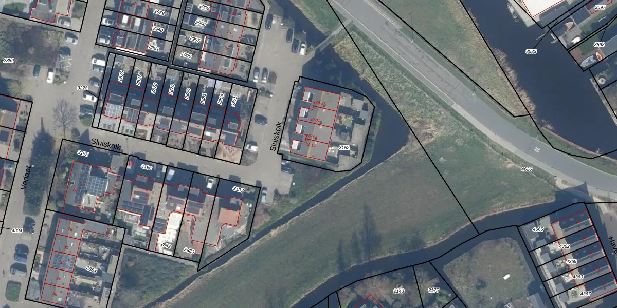 Sluiskolk 12 is gelegen op kadastraal perceel LMD02A3152. Deze kadastrale aanduiding is uniek en wordt gebruikt door het Kadaster om eigendomsrechten en andere zakelijke rechten vast te leggen. Het perceel maakt onderdeel uit van de kadastrale gemeente Leimuiden.