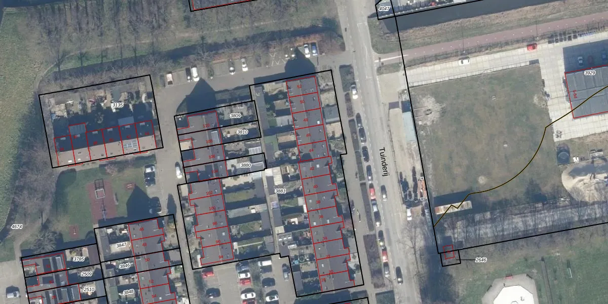 Het perceel waarop Tuinderij 44 staat heeft een oppervlakte van 2770 m². Dit is een zeer groot perceel. De perceeloppervlakte wordt geregistreerd door het Kadaster. Gedetailleerde informatie over de maten van dit perceel kunt u vinden in het rapport Kadastrale kaart met maatvoering van Tuinderij 44.