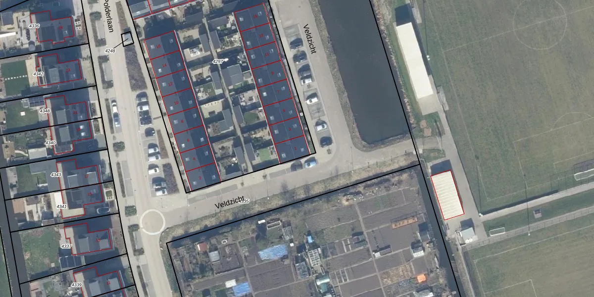 Veldzicht 1 is gelegen op kadastraal perceel LMD02A4297. Deze kadastrale aanduiding is uniek en wordt gebruikt door het Kadaster om eigendomsrechten en andere zakelijke rechten vast te leggen. Het perceel maakt onderdeel uit van de kadastrale gemeente Leimuiden.
