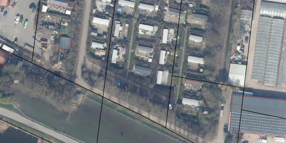 Het adres ligt op het perceel LMD02-B-402, dat zich in de kadastrale gemeente Leimuiden bevindt. De oppervlakte van het perceel is 2,9 ha. Dat is groter dan gemiddeld in Leimuiden, waar de gemiddelde perceeloppervlakte op 3728,72 m² ligt. Het kleinste perceel in de kadastrale gemeente is 0 m² groot. De grootste perceeloppervlakte is 43,8 ha. Er zijn 55 adressen aanwezig op het perceel. De laatste wijziging in het de Basisregistratie Kadaster (BRK) was op 12-06-2003.