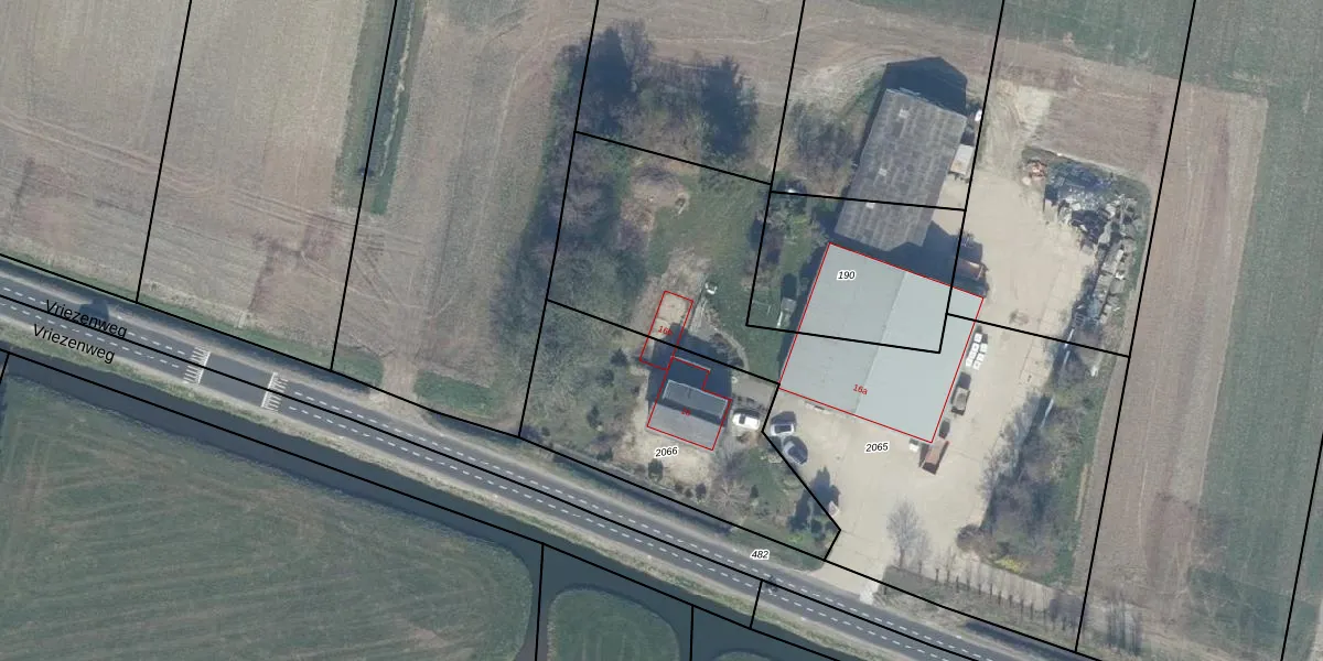 Vriezenweg 16-b is gelegen op kadastraal perceel LMD02C2065. Deze kadastrale aanduiding is uniek en wordt gebruikt door het Kadaster om eigendomsrechten en andere zakelijke rechten vast te leggen. Het perceel maakt onderdeel uit van de kadastrale gemeente Leimuiden.