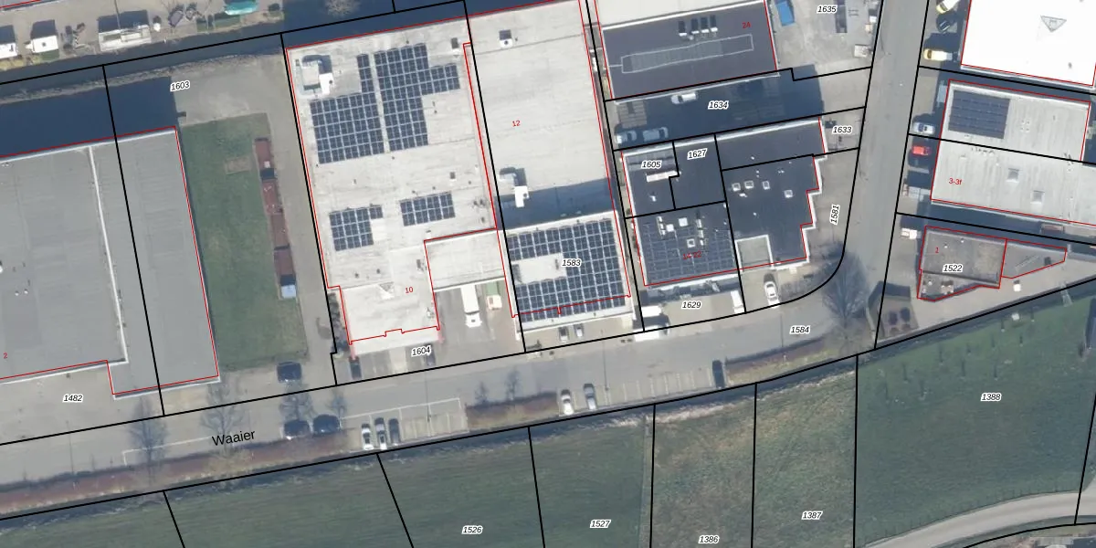 Gebruik de zoekbalk of klik op een perceel voor informatie over de adressen binnen dit perceel.