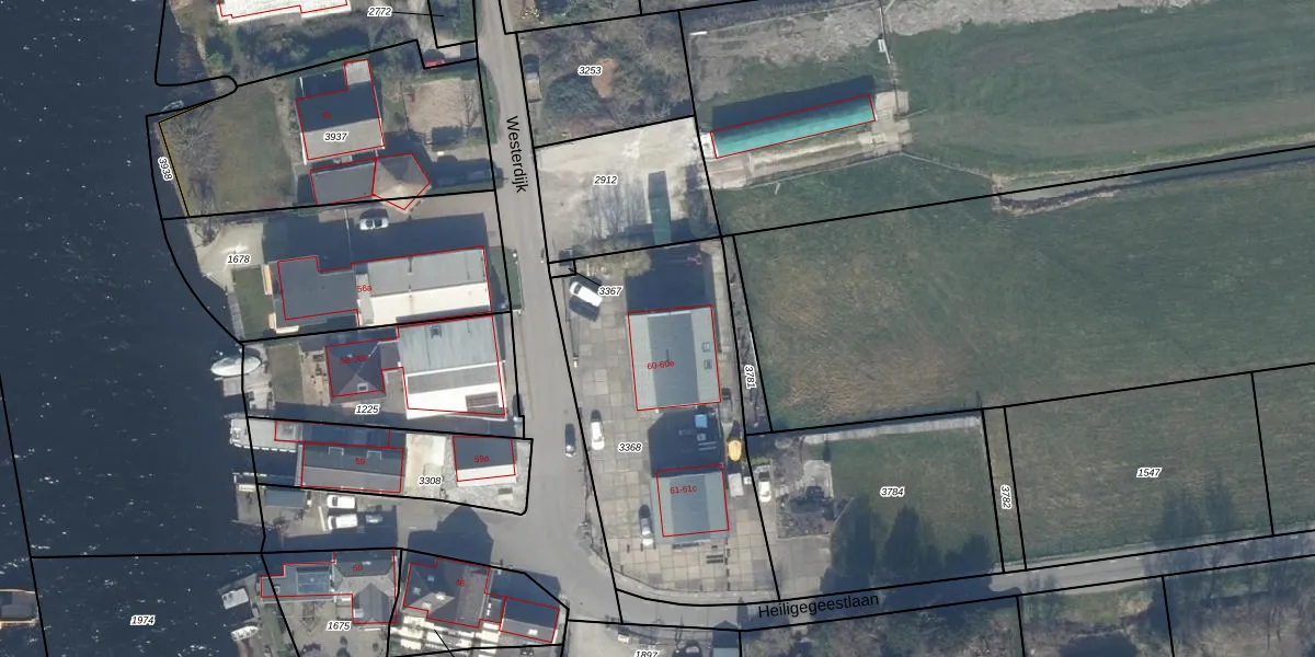 Het perceel waarop Westerdijk 60-d staat heeft een oppervlakte van 1371 m². Dit is een zeer groot perceel. De perceeloppervlakte wordt geregistreerd door het Kadaster. Gedetailleerde informatie over de maten van dit perceel kunt u vinden in het rapport Kadastrale kaart met maatvoering van Westerdijk 60-d.