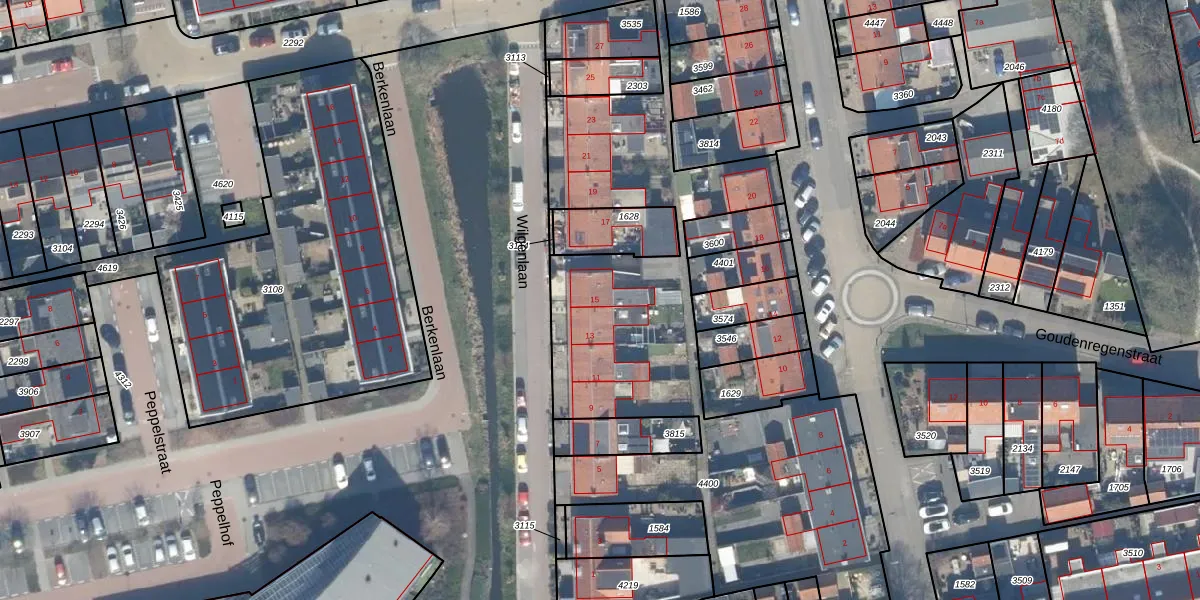 Het perceel waarop Wilgenlaan 15 staat heeft een oppervlakte van 2497 m². Dit is een zeer groot perceel. De perceeloppervlakte wordt geregistreerd door het Kadaster. Gedetailleerde informatie over de maten van dit perceel kunt u vinden in het rapport Kadastrale kaart met maatvoering van Wilgenlaan 15.