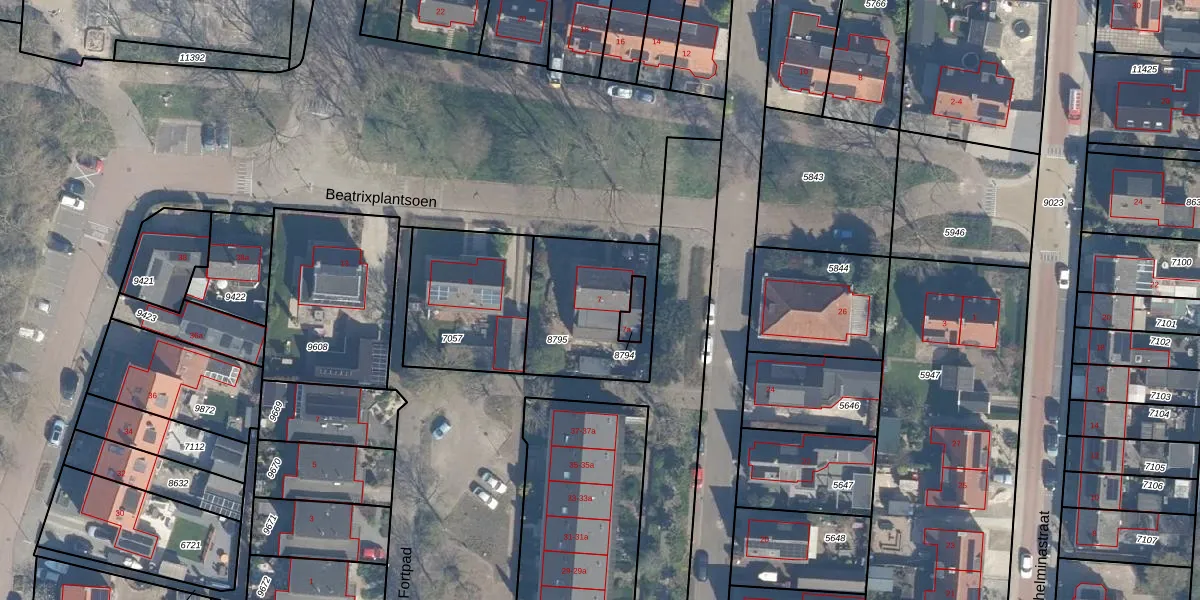 Het perceel waarop Beatrixplantsoen 7 staat heeft een oppervlakte van 429 m². Dit is een groot perceel. De perceeloppervlakte wordt geregistreerd door het Kadaster. Gedetailleerde informatie over de maten van dit perceel kunt u vinden in het rapport Kadastrale kaart met maatvoering van Beatrixplantsoen 7.