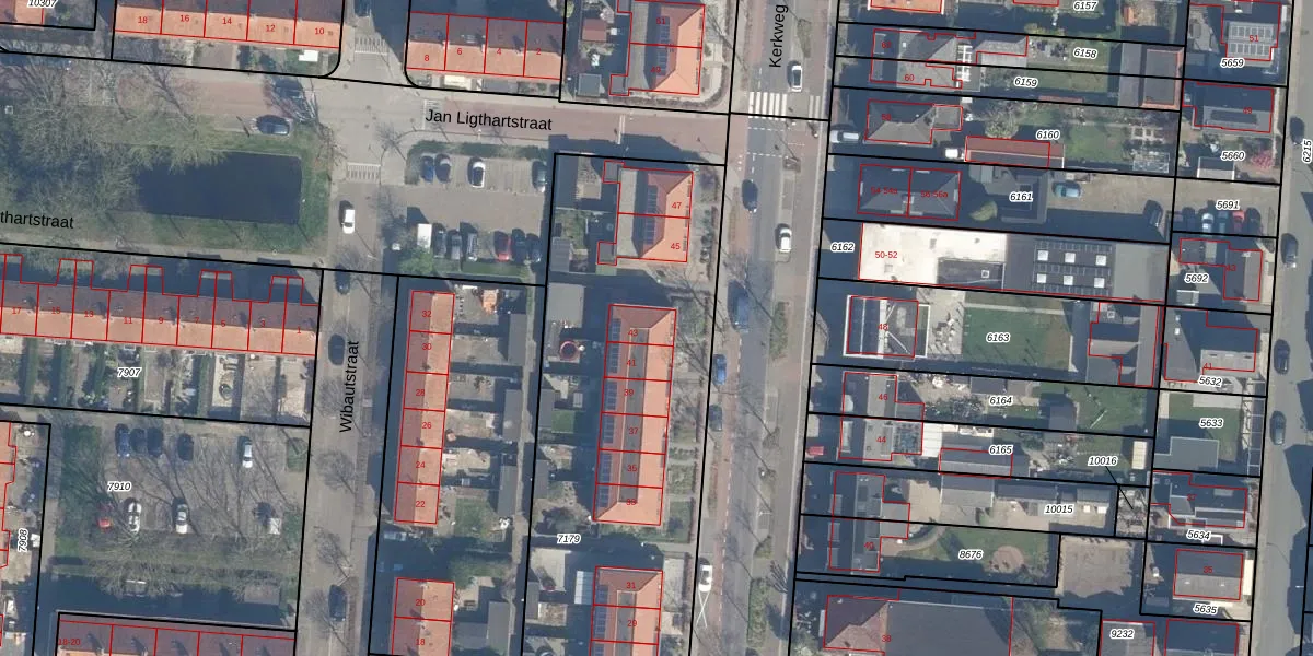 Kerkweg 43 is gelegen op kadastraal perceel LKK00C7179. Deze kadastrale aanduiding is uniek en wordt gebruikt door het Kadaster om eigendomsrechten en andere zakelijke rechten vast te leggen. Het perceel maakt onderdeel uit van de kadastrale gemeente Lekkerkerk.