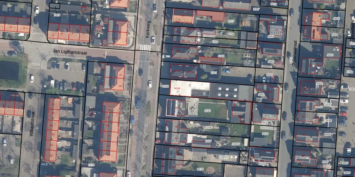 Kerkweg 50 is gelegen op kadastraal perceel LKK00C6162. Deze kadastrale aanduiding is uniek en wordt gebruikt door het Kadaster om eigendomsrechten en andere zakelijke rechten vast te leggen. Het perceel maakt onderdeel uit van de kadastrale gemeente Lekkerkerk.