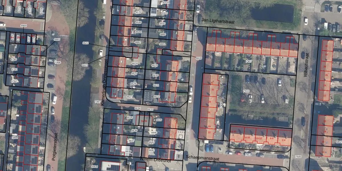 Het adres is gelegen op perceel 6631 in de sectie C en de kadastrale gemeente Lekkerkerk. De kadastrale aanduiding is aldus LKK00-C-6631. De gemiddelde perceelgrootte in Lekkerkerk is 3937,89 m². Dit perceel is kleiner: de perceeloppervlakte bedraagt 155 m². Het grootste perceel in de kadastrale gemeente is 28,2 ha. Het kleinste perceel heeft een oppervlakte van 0 m². Er zijn geen andere adressen aanwezig op het perceel. De huidige grenzen van het perceel zijn digitaal in de Basisregistratie Kadaster (BRK) geregistreerd op 19-12-2002.