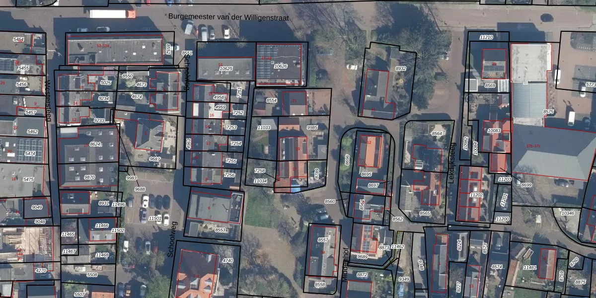 Gebruik de zoekbalk of klik op een perceel voor informatie over de adressen binnen dit perceel.